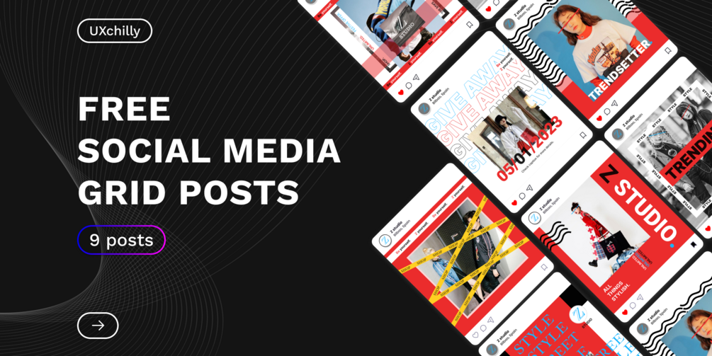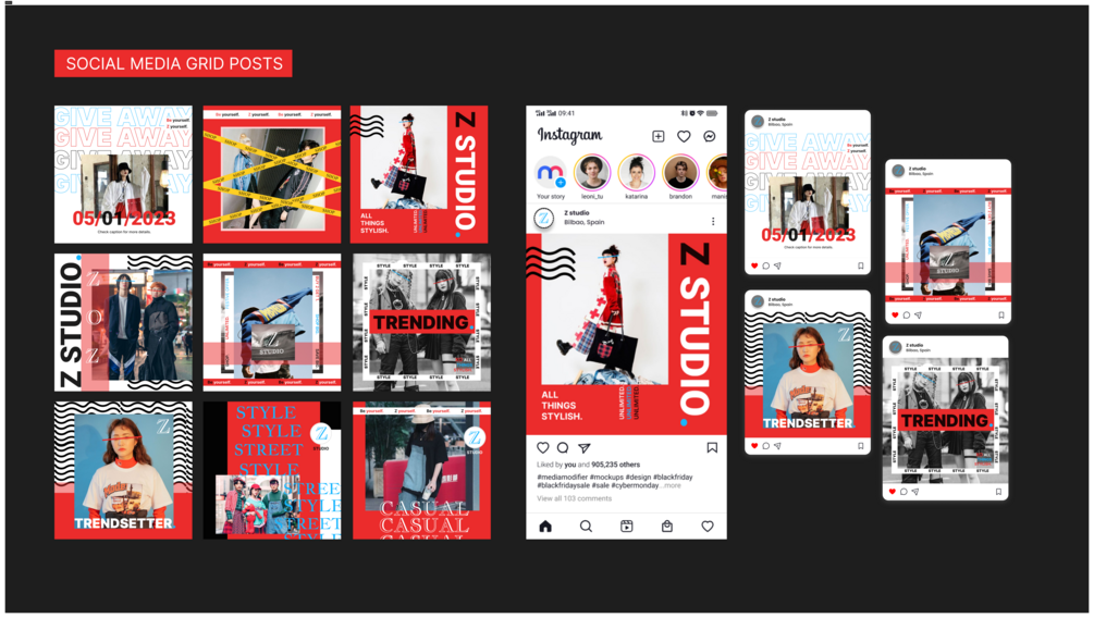 This is a social media grid post template for a streetwear fashion brand.This consists of 9 fully editable posts in figma